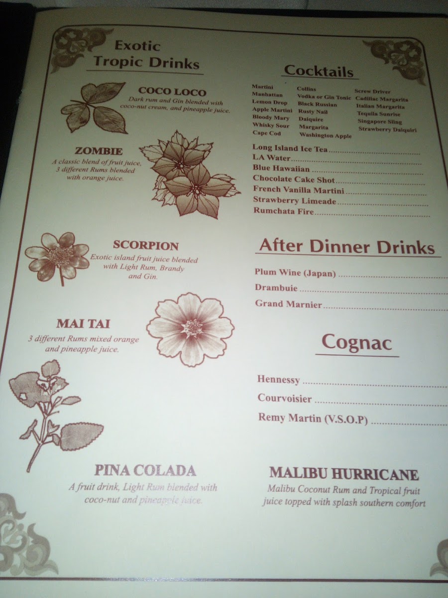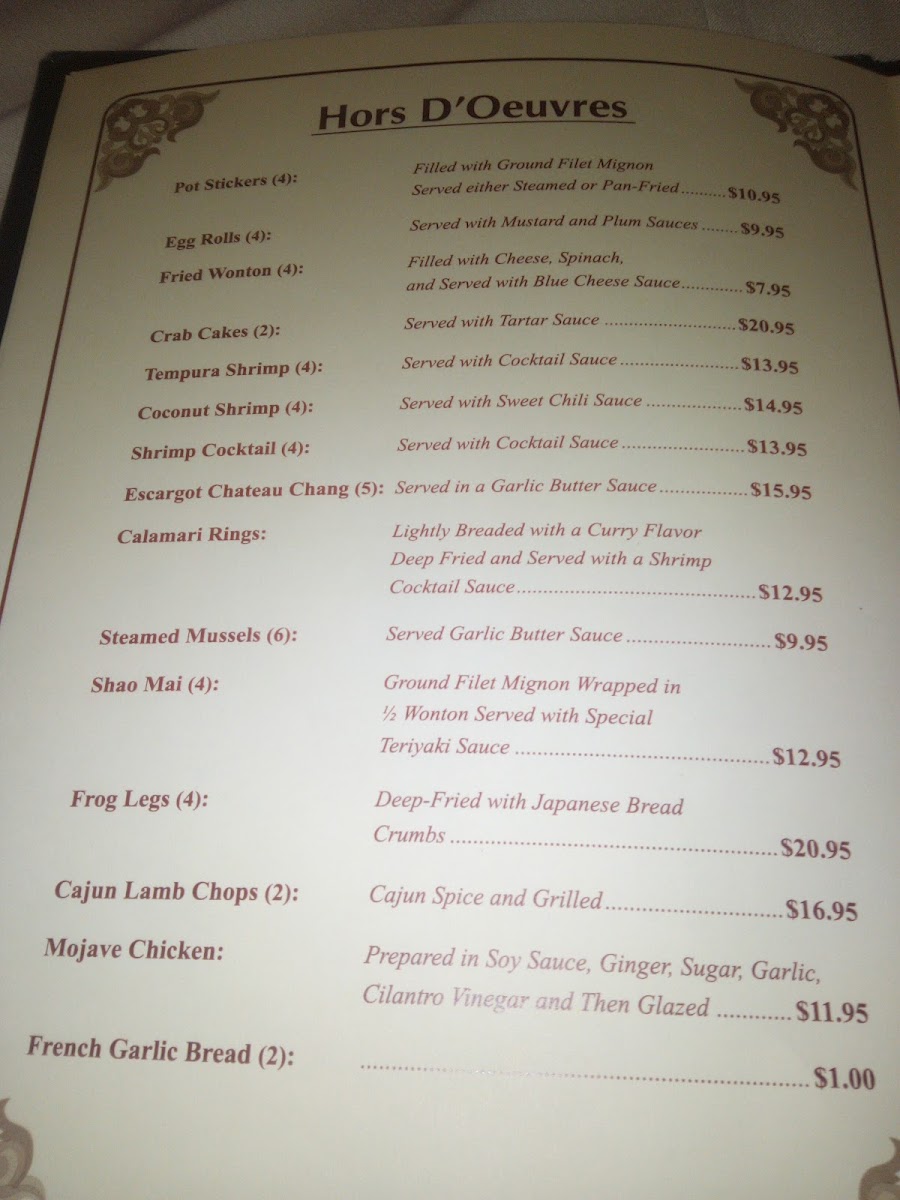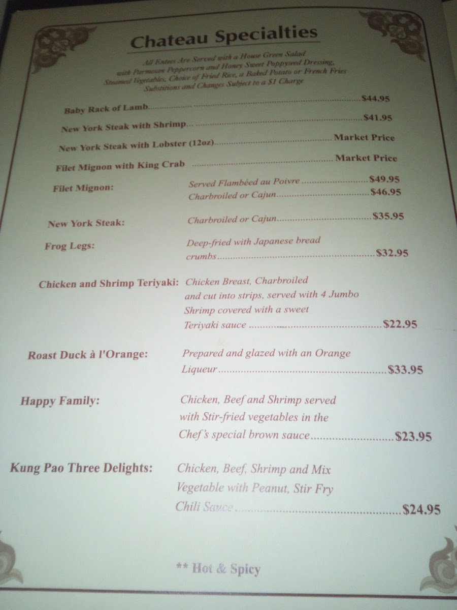 Chateau Chang Menu